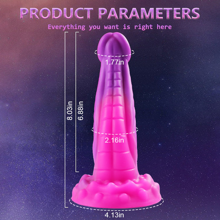 Verrattuna tavallisiin dildoihin, tämä mestariteos on todellinen nautinnon titaani. Sen vaikuttava koko takaa syvemmän penetraation, täyttäen sinut intensiivisellä tyydytyksellä. Rakenteelliset harjanteet lisäävät ylimääräistä kitkaa, tehostaen jokaista työntöä sähköistävillä tuntemuksilla. Halusitpa sitten hitaita, kiusoittelevia liikkeitä tai voimakkaita, täysimittaisia työntöjä, tämä ylisuurikokoinen alien-dildo on suunniteltu tyydyttämään jopa kaikkein kyltymättömimmät himot.