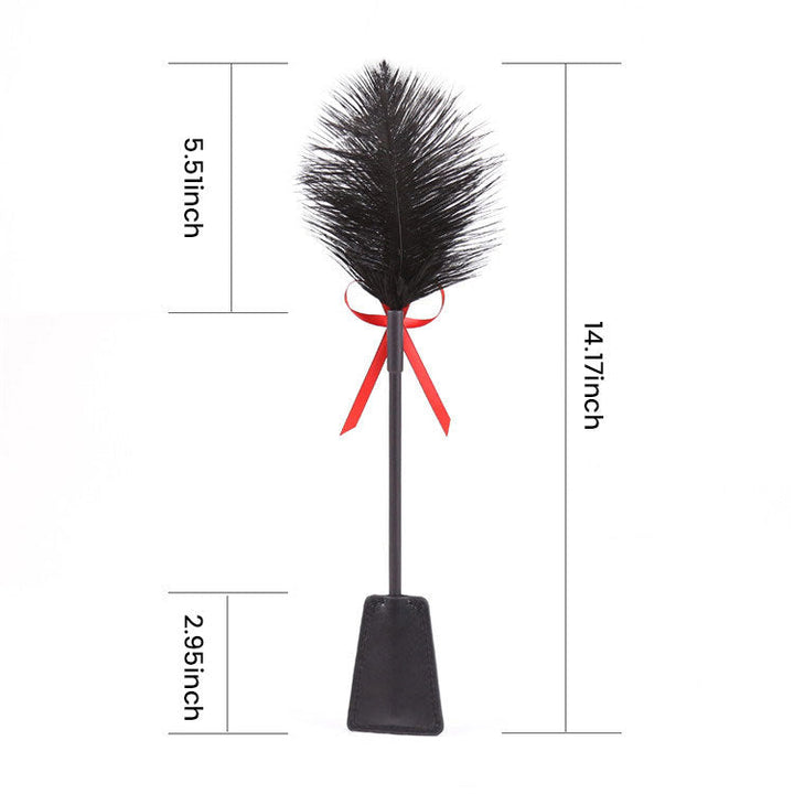 ✔ Kaksinkertainen kokemus – Toisessa päässä on pehmeitä strutsinsulkia hellään kiusoitteluun, kun taas toisessa päässä on jämäkkä nahkainen läimäytin voimakkaisiin läimäytyksiin.