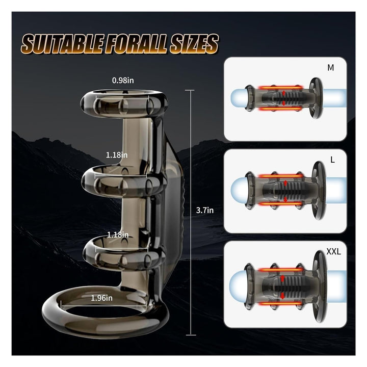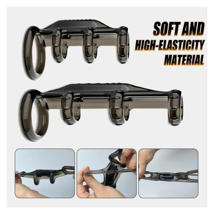 Turvallinen 3-renkaan muotoilu: Toisin kuin yksittäiset/kaksirenkaat, 3-renkainen rakenne istuu tiukasti liukumatta intensiivisen leikin aikana. Pehmeä, teksturoitu TPE-materiaali takaa mukavuuden sinulle ja kumppanillesi.