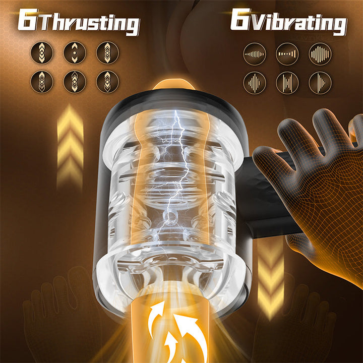 Kuusi dynaamista tilaa Nauti kuudesta voimakkaasta työntö- ja värinätilasta, jotka on huolellisesti suunniteltu lisäämään nautintoasi. Aloita hitaasti ja lisää intensiivisyyttä vähitellen tai siirry suoraan nopeaan, sykettä nostattavaan kokemukseen. Eri asetukset mahdollistavat mielialasi mukaisen käytön, tarjoten jatkuvaa jännitystä ja tyytyväisyyttä jokaisella käyttökerralla.